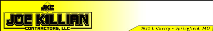 WelcomeJoe Killian Contractors, LLC. is a locally owned firm, with roots in the area going back nearly 75 years. Our personnel have decades of experience, not only in residential and commercial construction, but also in Real Estate development in Southwest Missouri. |